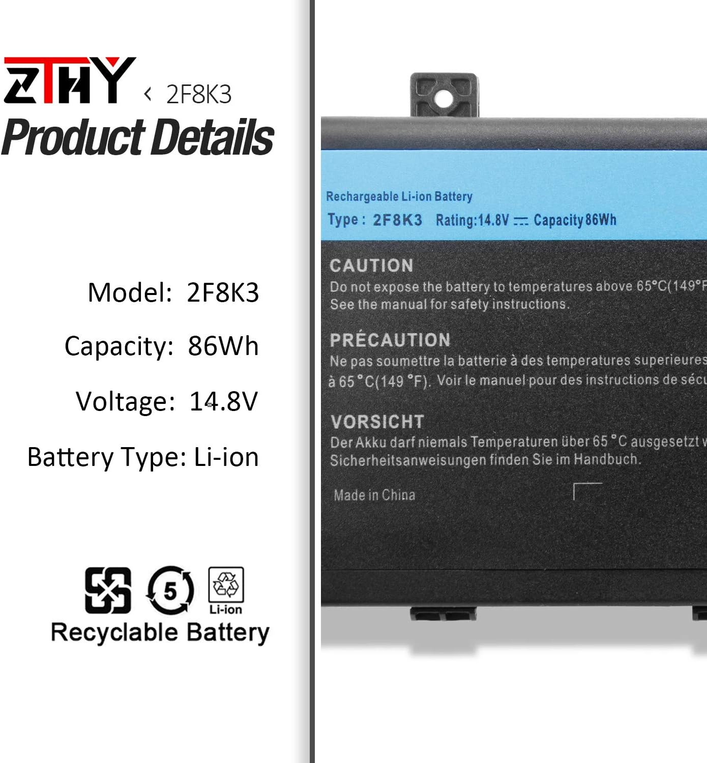 Greentech new 191yn replacement battery for alienware 15 r1 and alienware 15 r2 14.8v 92whr 8 cell primary battery 2f3w1.